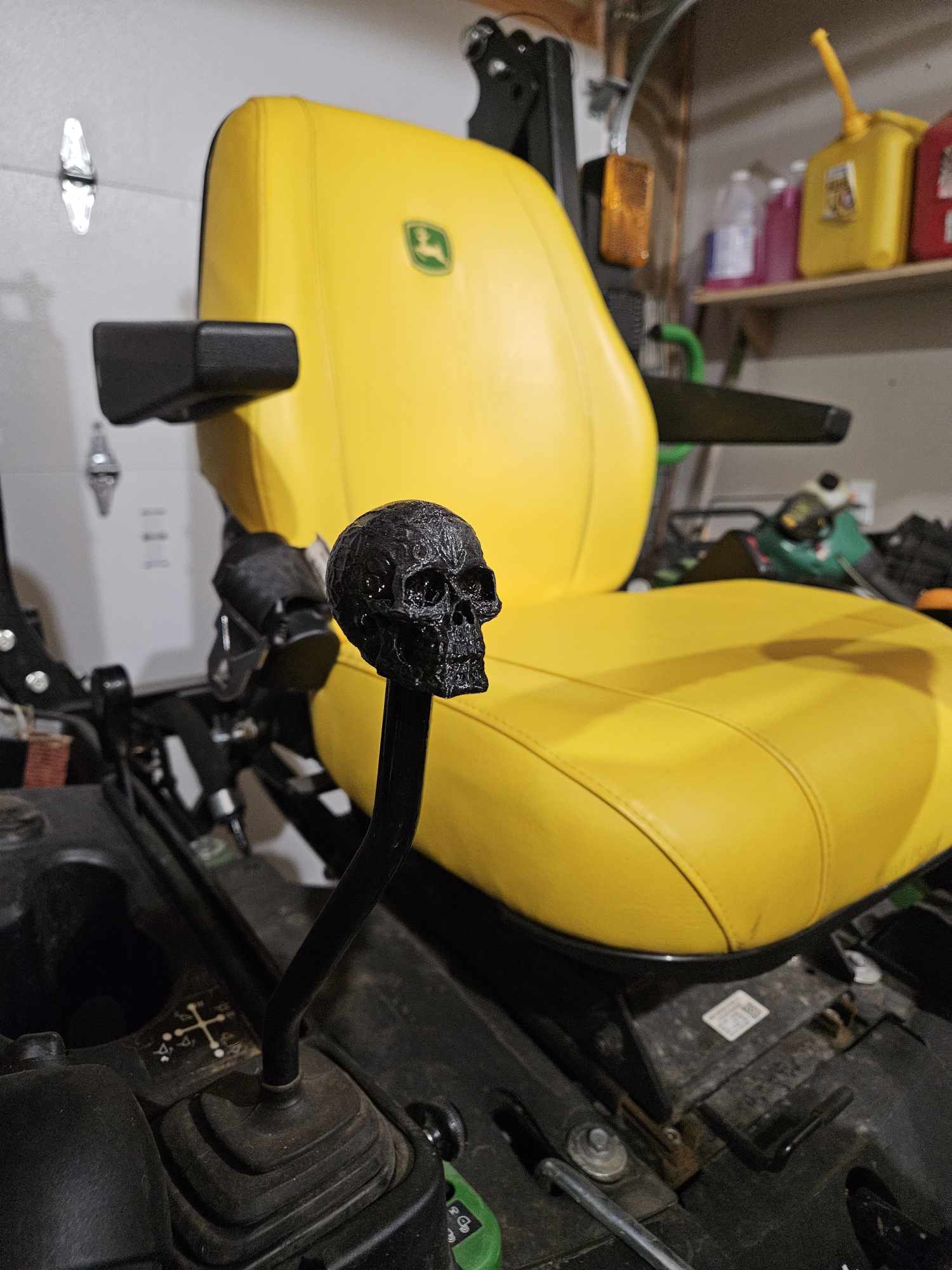 The factory loader control knob works fine, but it’s not exactly fun. This Skull Loader Knob gives your tractor a little personality while still being practical and easy to use. It’s shaped for a comfortable grip and threads directly onto the factory loader control lever in place of the OEM knob. What it does - Replaces the stock loader knob with a skull‑shaped handle - Ergonomic shape that’s easy to grab from different angles - Adds a custom look to your operator station - Made from durable material for outdoor use Installation 1. Unscrew the factory loader control knob from the lever. 2. Clean off any factory blue Loctite from the threads. 3. Thread the Skull knob onto the lever by hand. 4. Turn it until the bottom of the knob is almost flush with the black paint or until it feels secure. Hand‑tighten only – tools aren’t needed. If the factory knob is difficult to remove, use a shop rag and locking pliers or channel locks for more grip, being careful not to damage the lever. Fitment - Fits: John Deere 1025R, 1023E, 1026R, Gen2 2025R If you’re running a different model and want to confirm compatibility, email sales@rob-makes.com.